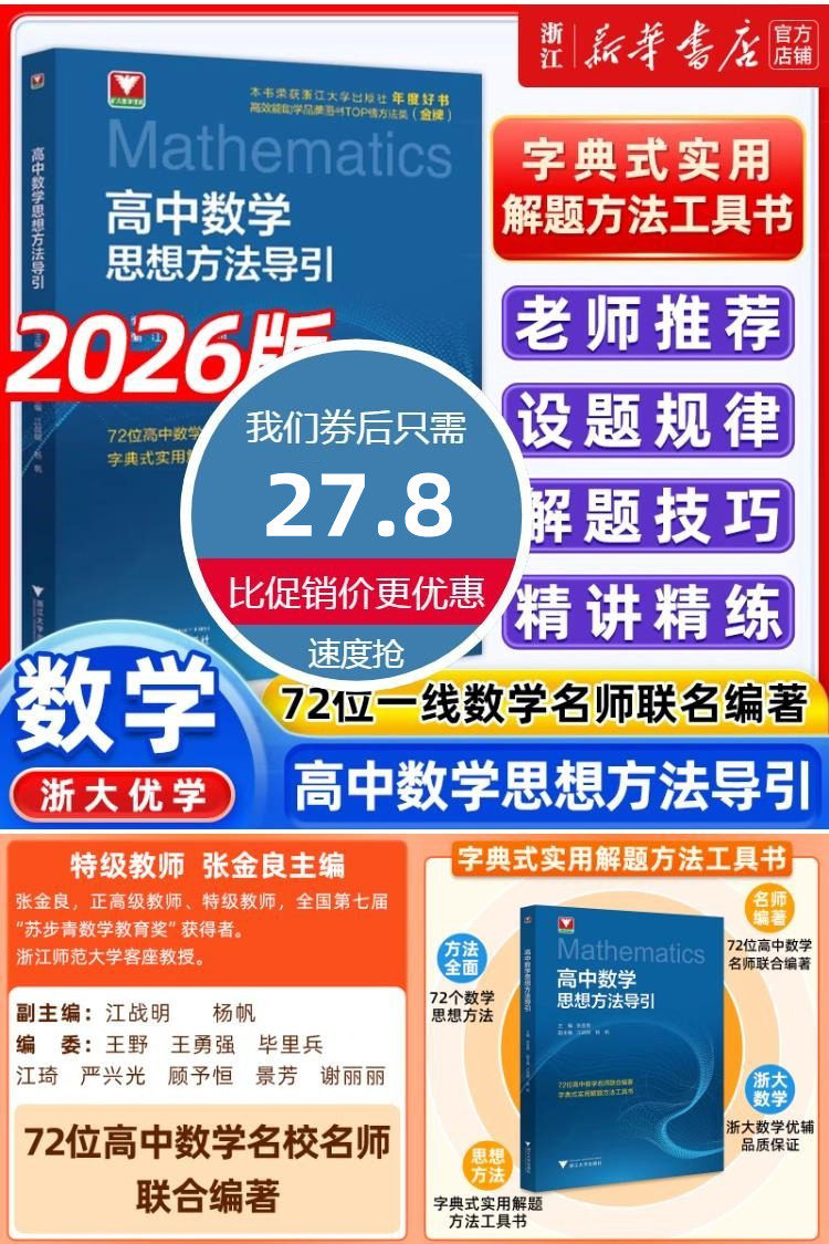【新华书店正版】2026高中数学思想方法导引,72位高中数学名师联合编著,方法全面,例题新颖,难易适中,普适性强,数学难点,提纲挚领,字典式使用解题方法工具书!