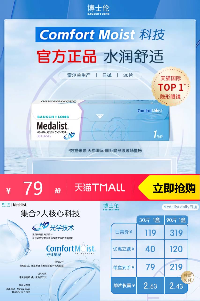 【1、叠加金刚券+淘金币 到手 67.94 2、店铺限时红包5元,叠加消费券后最 低56.91,平均 1.89/片】官方正品水润舒适,采用非球面光学设计,有效修正球面像差,夜晚雨天依旧清晰视觉~