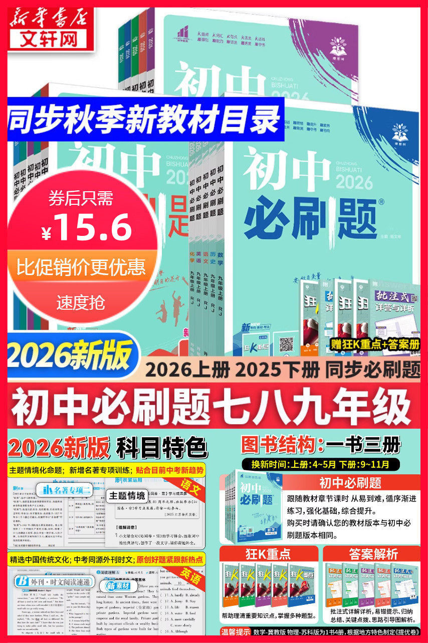 【赠答案册+狂K重点】2026版初中必刷题,老师推荐,刷基础、刷易错、刷难点、刷提升、刷综合、刷考点、刷素养、刷速度,8大核心,快速提分!层级训练,冲刺中考!