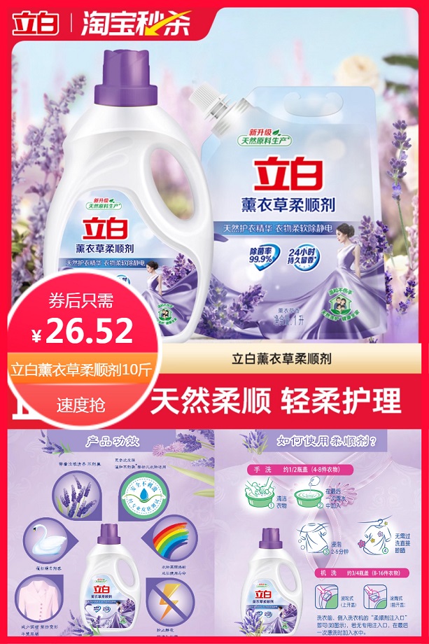 立白 26元10斤立白薰衣草柔顺剂 11元减14.48 商品纠错