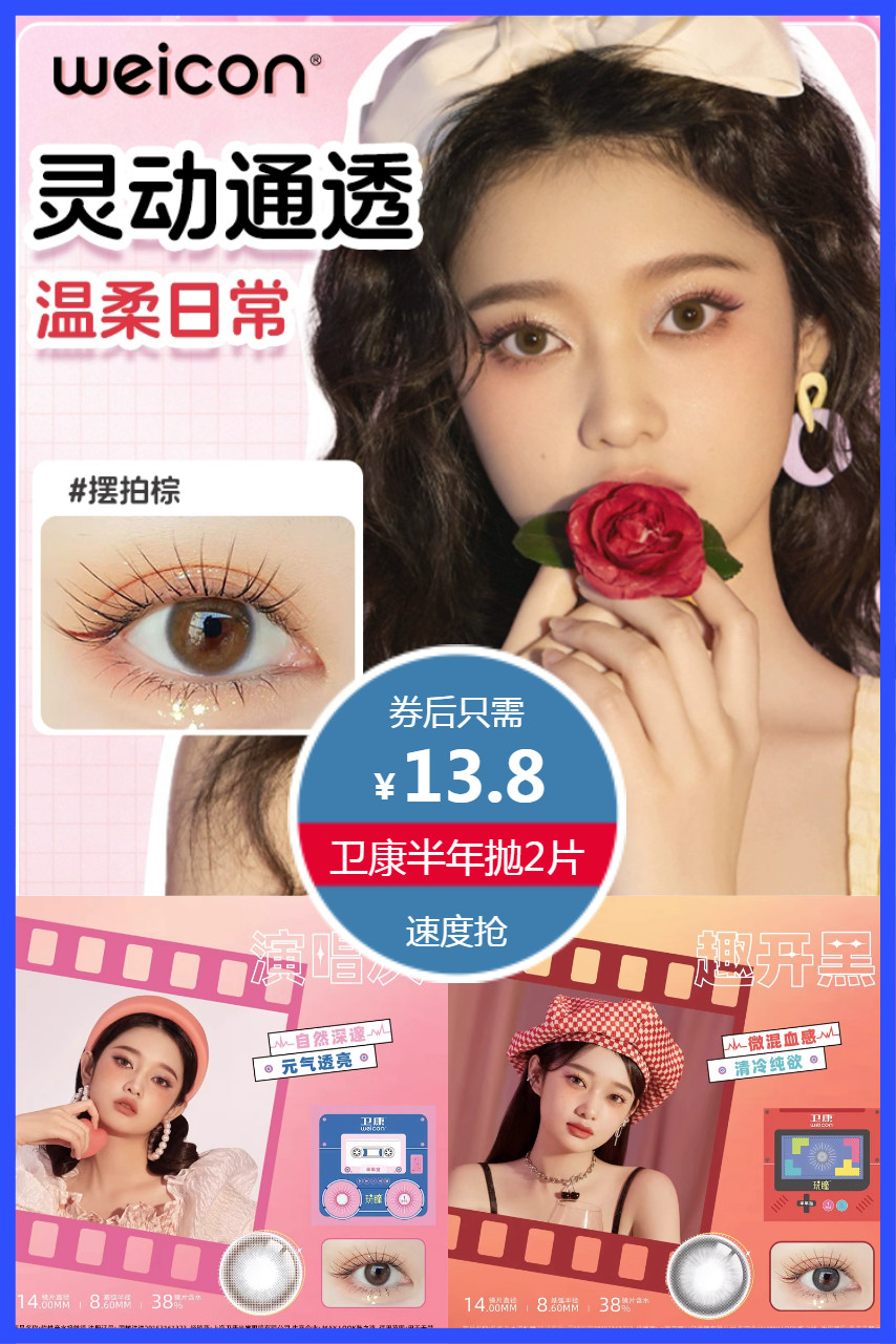 拍2件淘金币+88会员叠加劵到手11.92元!卫康半年抛彩色近视隐形眼镜2片,38%镜片含水,聆听棕裸感通勤,清透融瞳,摆拍棕灵动通透,温柔日常,椰开黑微混血感,清冷纯欲!追光不惧光 亮眼更护眼