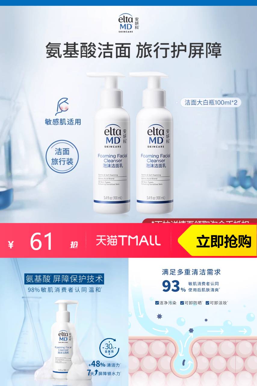 Elta MD 安妍科氨基酸洁面乳洗面奶100ml*2 1元减40 商品纠错