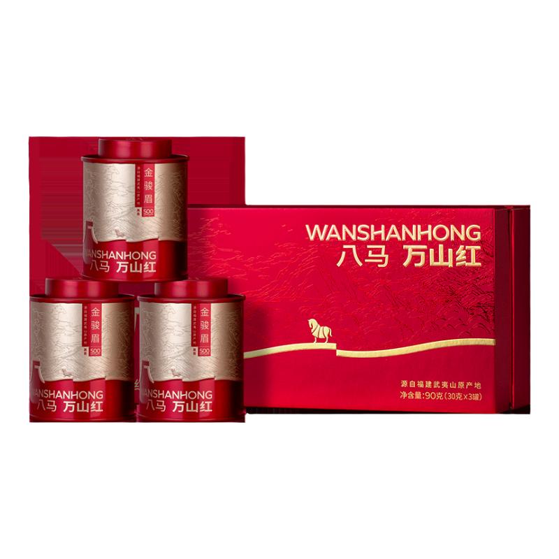 【礼盒装金骏眉红茶】品牌效应+产地特色+独特口感+礼品价值+方便携带!!八马茶业出品,武夷山原产地保证,高香花果蜜甜,精美包装适合送礼自用,小巧茶罐方便携带!!关键品质与信任兼备!!