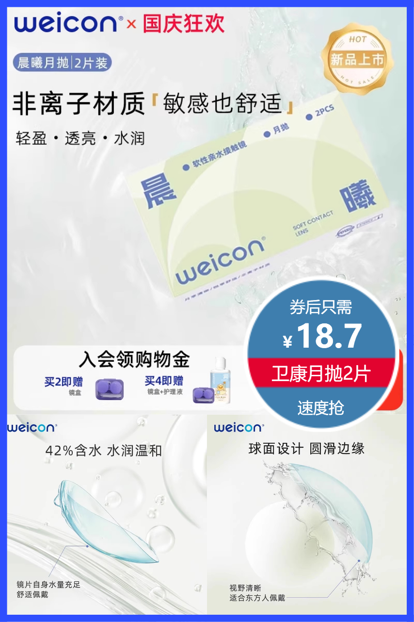 88会员淘金币叠加劵到手17.11元!卫康晨曦月抛美瞳隐形眼镜2片,非离子材质,敏感也舒适,轻盈、透亮、水润,42%含水水润温和,球面设计,圆滑边缘,视野清晰,水润透痒!