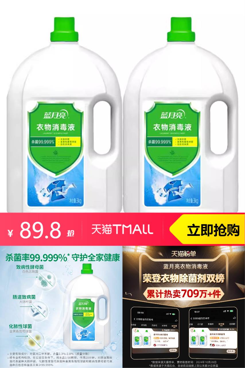 【百补89.9,详情页点淘金币加购,领金刚券,叠加淘金币+金刚券+88折消费券到手67.4左右!】蓝月亮衣物消毒液杀菌12斤,专为衣物消毒设计,母婴可用