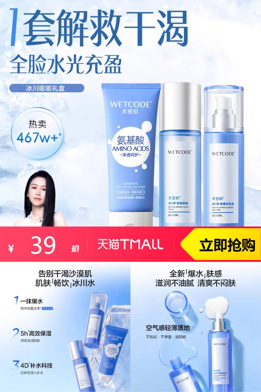 【淘金币抵扣1 叠加三八消费券到手33.19】玻尿酸深层补水,质地温和不刺激。