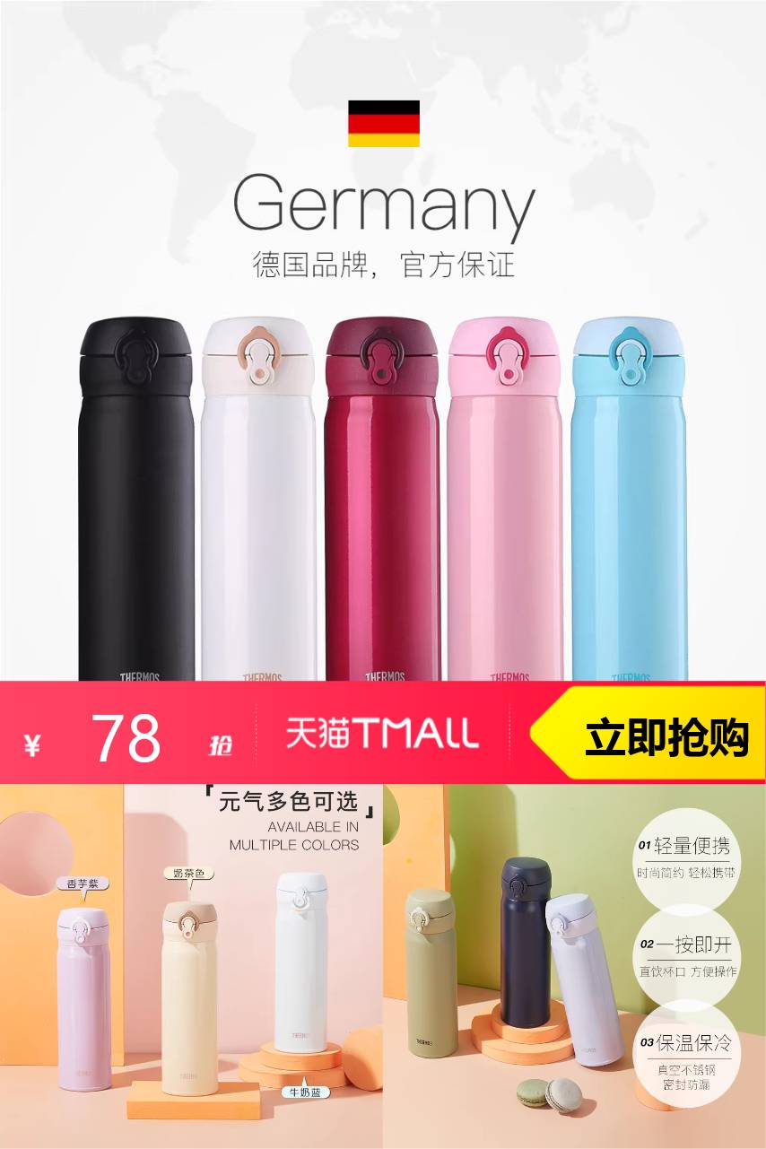 【官方限时补贴61元,88vip专享9.5折抵扣3.9元,淘金币抵扣5.18元,到手68.92元】膳魔师不锈钢保温杯,经典简约弹盖设计,500ml容量,保冷保热效果出色,车载便携更方便,品质之选!