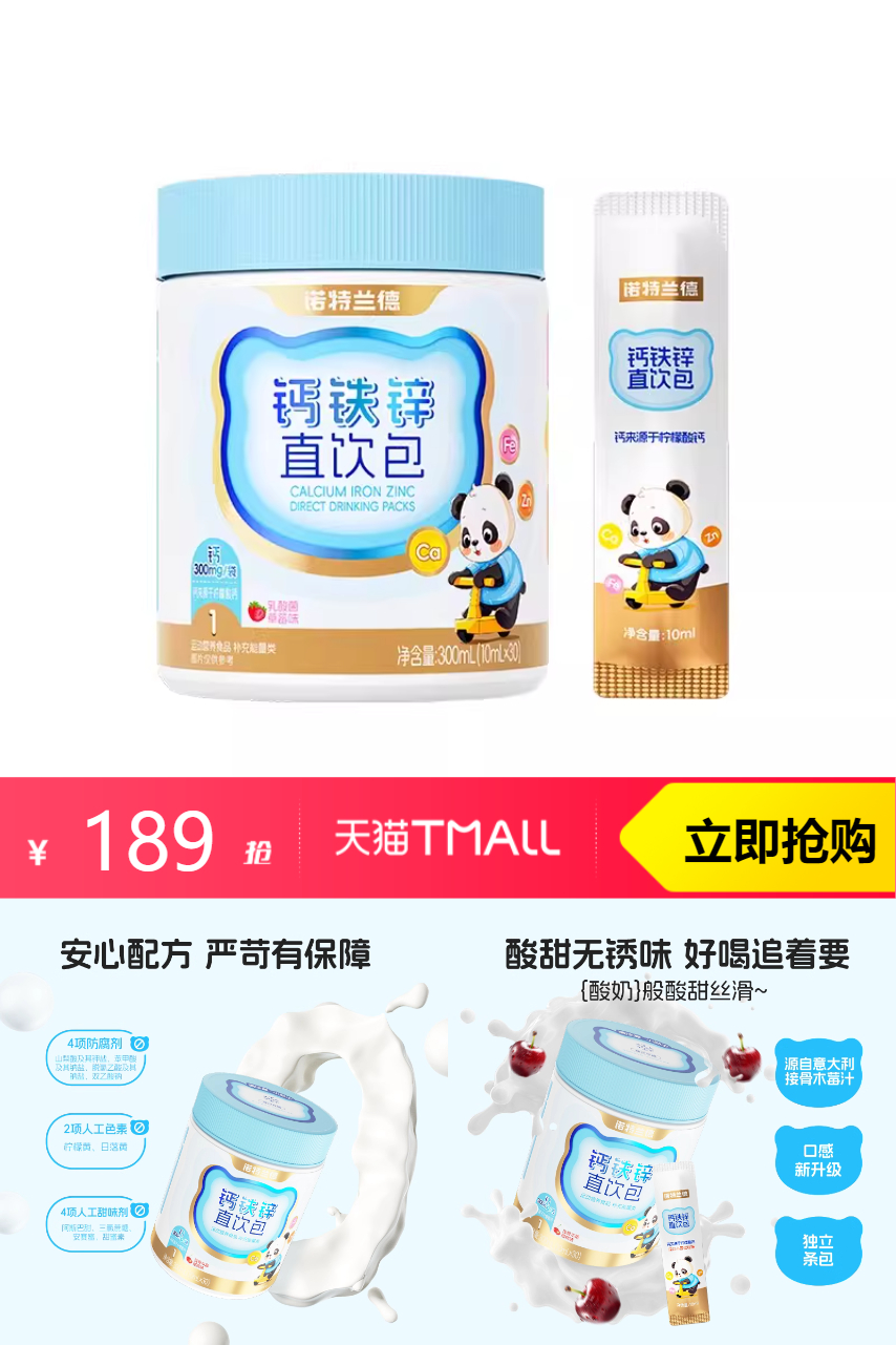 【超级立减53元,会员立减10元,淘金币抵扣7.04元,到手价181.96元。】诺特兰德液体柠檬酸钙铁锌儿补非赖氨酸童,抓住儿童成长黄金期,养娃不费力,孩子抢着喝,酸奶般酸甜丝滑~