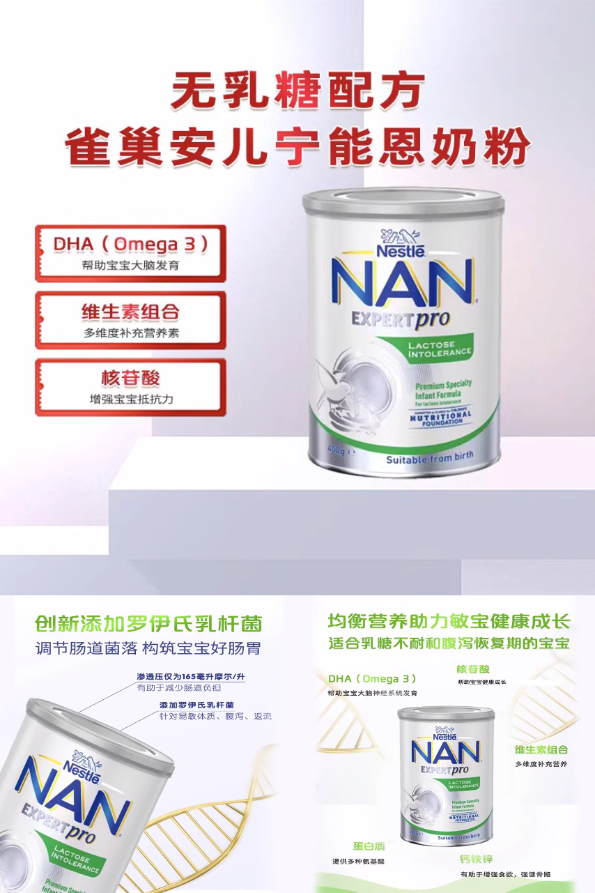新用户到手更优惠!澳洲Nestle雀巢安儿宁能恩LI无乳糖奶粉防腹泻配方婴儿奶粉,均衡营养,助力敏宝健康成长!品质保证,速抢!