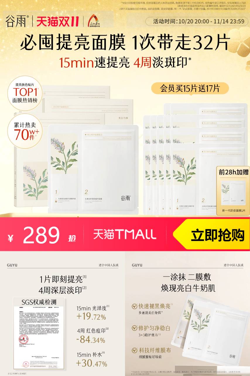 【53立减-49美妆惊喜券-12元88vip95折-20.56淘金币-消费券20.8到手186.5 】补水美白去黄气暗沉淡斑,保湿提亮1+1>2!15分钟褪红提亮,淡斑改善暗沉,脸蛋透亮细嫩!!