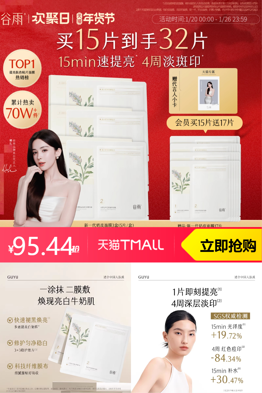 【立减40+88vip抵扣5.45+淘金币10.29+淘礼金3.27+消费券抵扣11.66到手78.33元】美白+补水+去黄气!!提亮肤色!修护肌肤!无荧光剂,安全可靠!!超细纤维膜布,营养更易吸收!!含有光果甘草定,抑制黑色素抗氧化!!