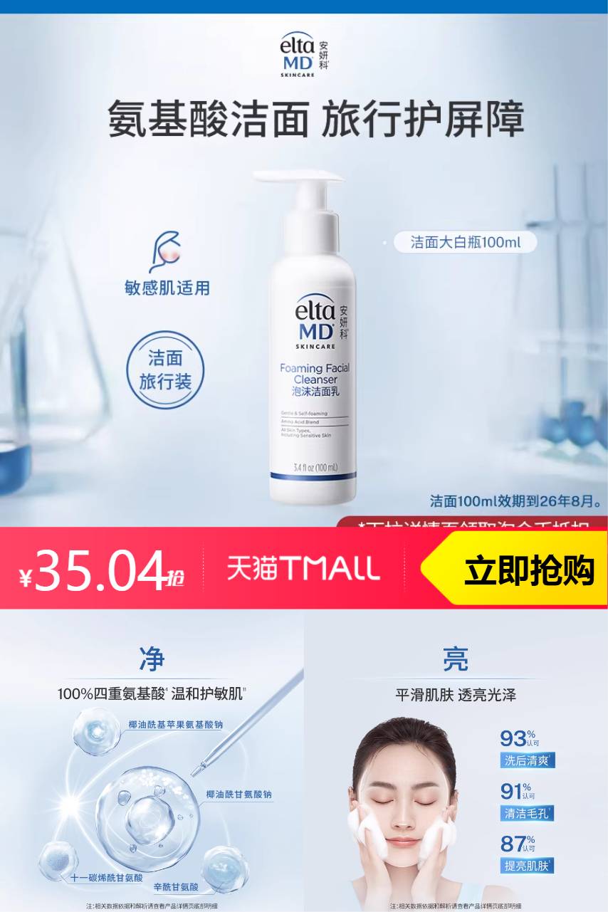【百补到手39元,叠加3.96淘金币到手35.04,效期到8月份】温和净澈自发泡,清洁不紧绷~