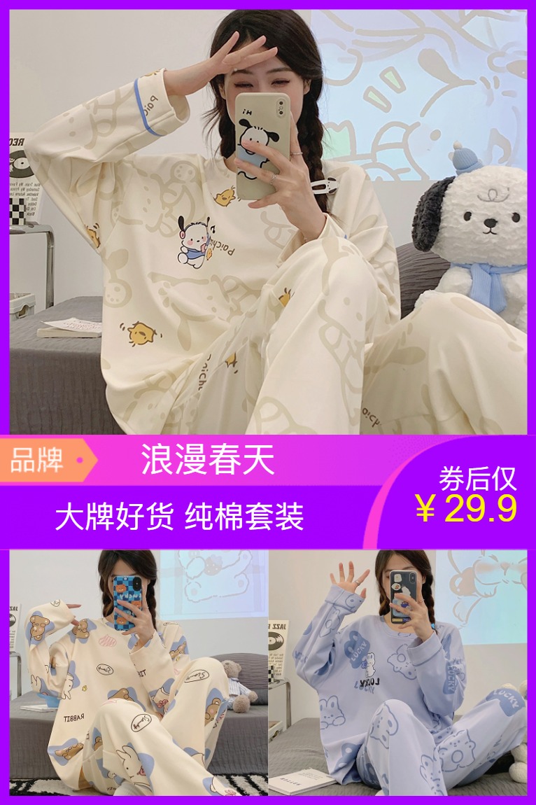 【浪漫春天】温柔气质girl必备!浪漫春天长袖+长裤2件套家居服!!纯棉品质!舒适柔软!细节做工堪称完美!穿着透气舒适~做工贼好!穿着睡觉真的巨巨巨舒服~赠运费险