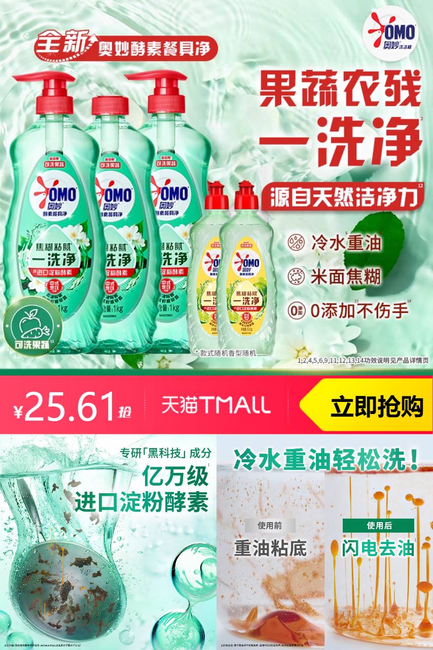 【下拉详情叠加4.29金币到手25.61】全新奥妙酵素餐具净,焦糊黏腻,一洗净。3大瓶+2小瓶,洁净力超强,品质保证,物美价廉不容错过!