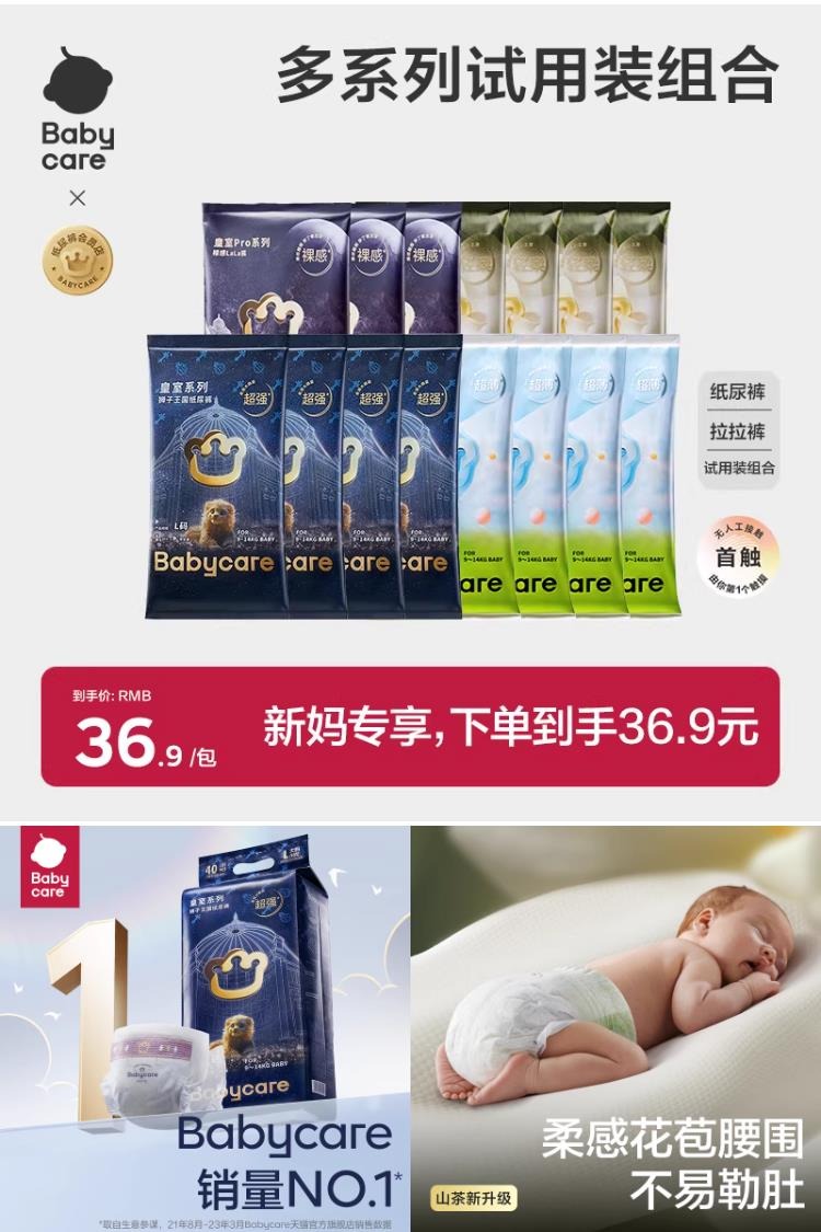 【babycare纸尿裤店,到手36.9元】babycare皇室/airpro/山茶轻柔/皇室纸尿裤,全系焕新,皇冠加冕,守护成长,全新皇室,柔,薄,大吸量,云柔细腻,告别摩擦泛红,瞬吸大吸量,大弹力护围。