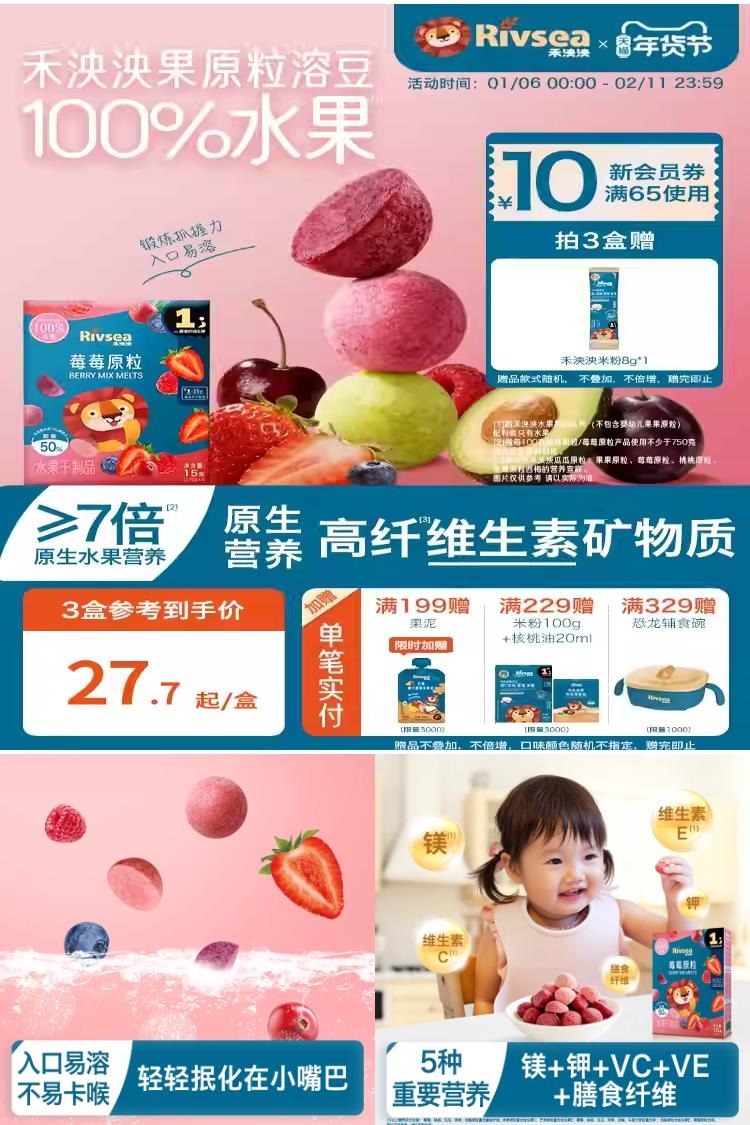 【3盒叠88VIP到手66.46元,满199赠果泥】禾泱泱水果原粒溶豆,精选中国好水果,采用真空冻干工艺锁住鲜果,不添加糖自然酸甜,入口即化,打开味蕾小宇宙,没有配料全是水果,小袋分装1次1袋。速速抢购。