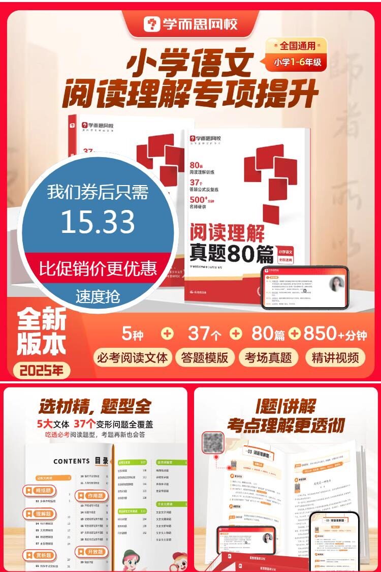 【赠训练课+名师精讲视频】学而思新升级满分阅读理解一本通,套公式练真题,踩分准提分快!内容全、方法好、精.准学、能运用、名师讲、小学语文阅读理解专项提升!