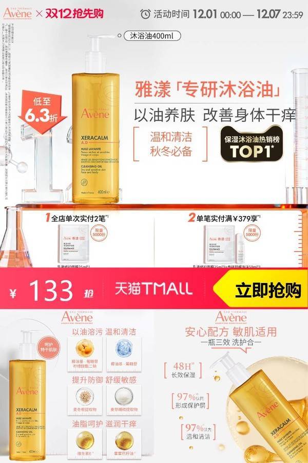 【立减20,优惠券12,淘金币9.65,到手123.35】无论是日常妆容还是顽固彩妆,这款卸妆水都能轻松应对。它特别适合油性及敏感肌肤,为你的肌肤带来温和而高效的清洁体验。