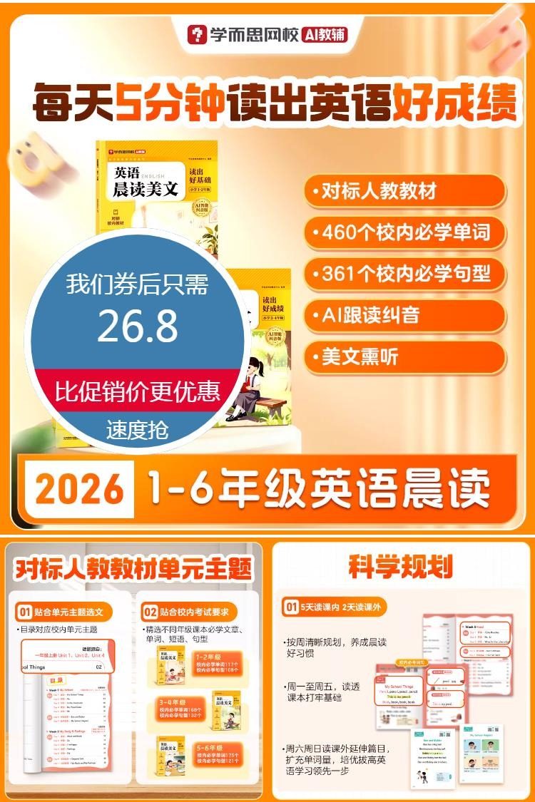 【学而思官方】2026春季学而思小学英语语文晨读,津贴教材,美文熏听,积累词句,AI跟读纠音,每天晨读5分钟,读出英语好成绩!