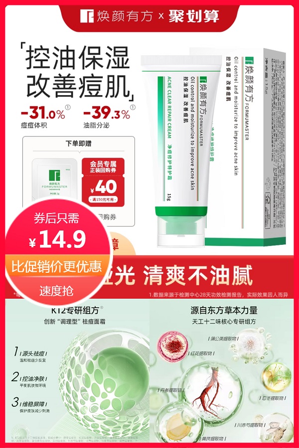 【到手只要14.9元!在加赠2g!】焕颜有方祛痘特护霜,控油保湿,改善痘肌!清爽不油腻~源头温和祛痘,平衡肌肤环境,保护皮肤减少刺激!