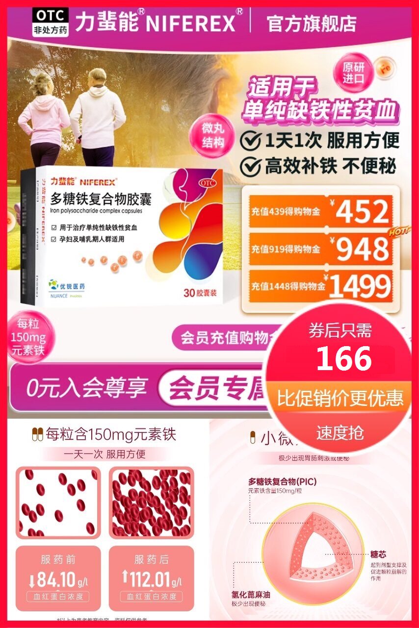 力蜚能多糖铁复合物30粒*2盒,补铁补血,专为气血不足!原研进口,品质保证!0.15g*30粒/盒,科学剂量!力蜚品牌,值得信赖!改善贫血,温和不刺激!速来囤货