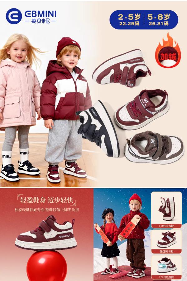 英贝米尼儿童棉鞋,A类婴幼儿标准棉布+加厚珊瑚绒内里,柔软亲肤、保暖不闷脚,学步期宝宝稳稳迈出步~172.9元到手!冬季新款低帮板鞋,轻盈防滑橡胶底+宽圆头设计,小脚丫自由舒展不挤脚!给宝贝一双会呼吸的暖冬小鞋,现在就安排!