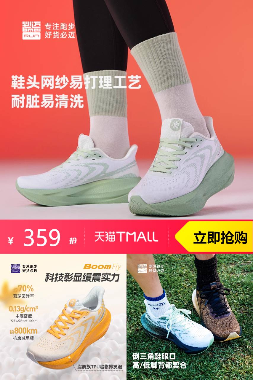 【淘金币59.67,红包35.9,到手263.43】中底加厚,优化黄金坡差,7.5mm的中坡差,跑动更均衡。