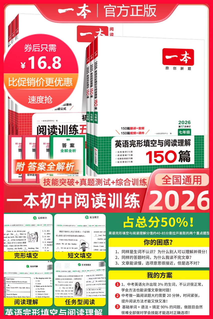 【附答案解析+视频讲解】一本语文阅读专项训练,七八九年级+中考,“三段式”答案解析,本题考点+解题思路+据题精析,新颖实用,高效训练,授之以渔,助千万中学生赢得阅读高分!