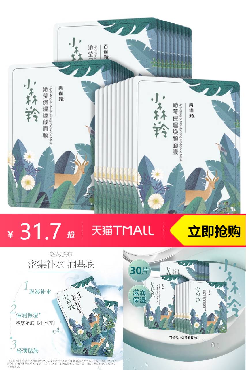 【下拉跳转,立减13.3元,券9元,淘金币0.54元,非88vip到手31.16元。88vip到手29.57元,折合9毛多一片。】百雀羚小森羚面膜补水保湿30片,轻薄膜布,密集补水 润基底,柔软贴肤~