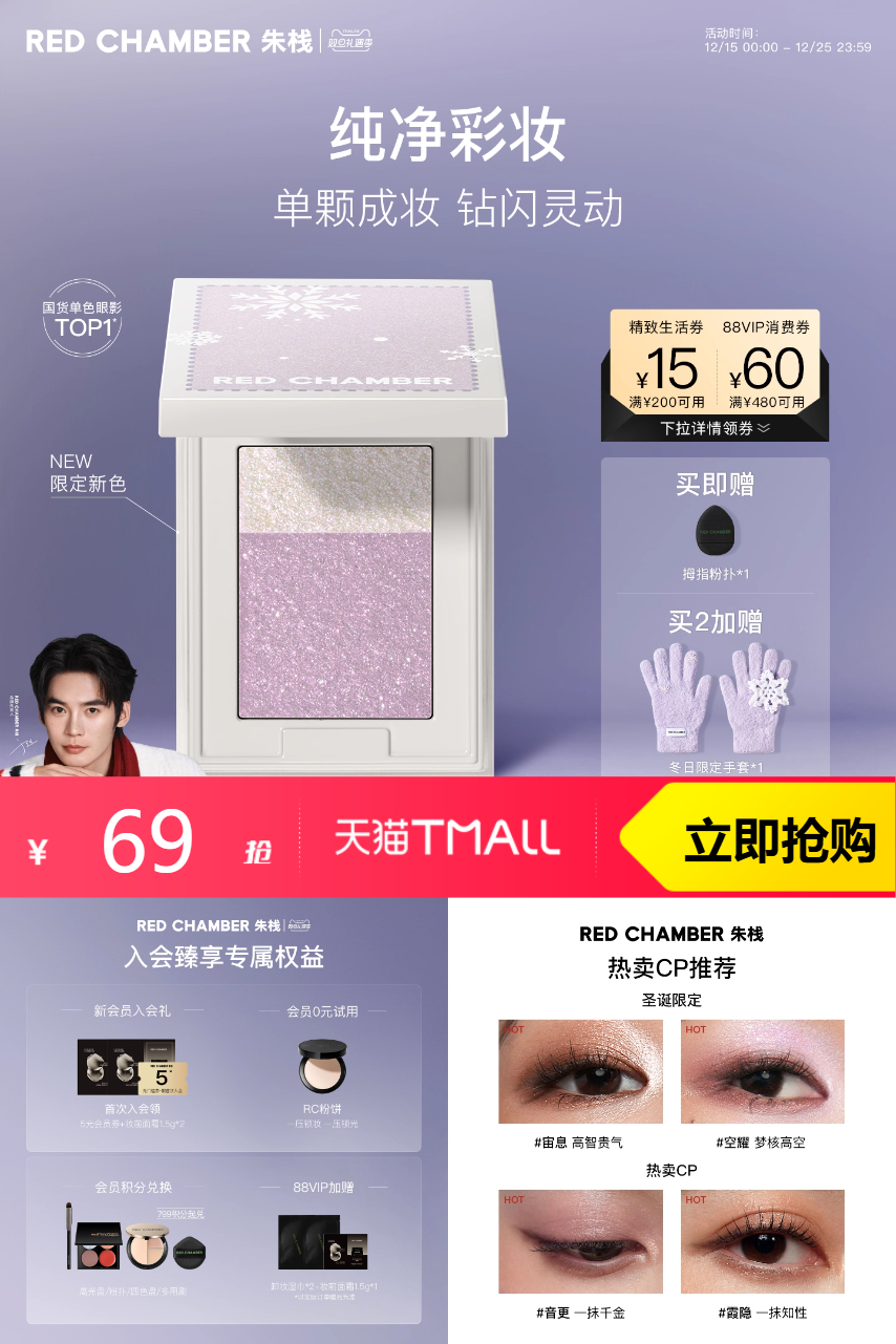 【原价95-立减17-金币1.9-限时红包3-优惠券9-凑200减8.37=55.73到手】[限时立减 秋冬新色]朱栈RC多用粉,RC朱栈的眼影盘不仅给你带来了绚丽多彩的色彩,更专注于无添加,不含重金属等刺激性成分。