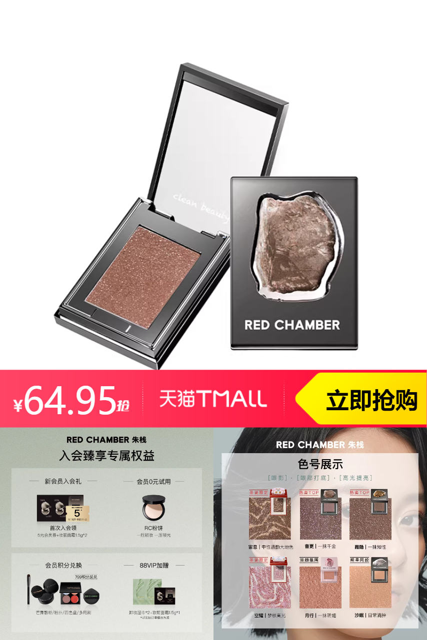 【原价95-立减17-金币1.9-限时补贴4.05-优惠券9-凑200减7.88=55.17到手】[限时立减 秋冬新色]朱栈RC多用粉,RC朱栈的眼影盘不仅给你带来了绚丽多彩的色彩,更专注于无添加,不含重金属等刺激性成分。