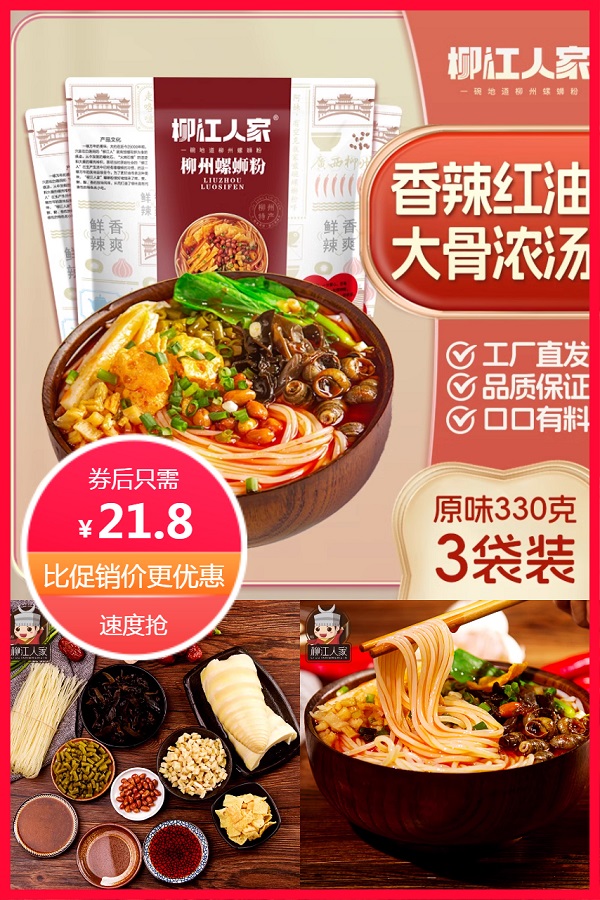 【3包到手只要21.8元!】柳江人家广西柳州螺蛳粉330g*3包,鲜香浓汤,劲道十足!配菜丰富一碗过瘾~线下门店超100+家!好吃又靠谱~