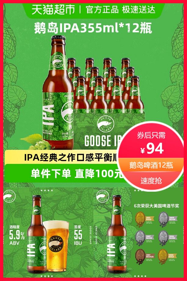 秒杀直降100元+券5元+88vip省4.7元+点击右上角三个点进入淘金币抵扣2元+红包立减5元后约82.3元,今日精酿,鹅岛ipa,这个价格很难找岛比这个还好的拉!大量酒花投入让鹅岛在漫长发酵过程中,保持独特的味道,趁着活动价格,可以多囤