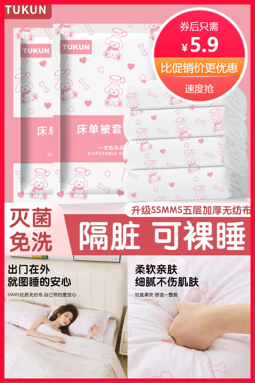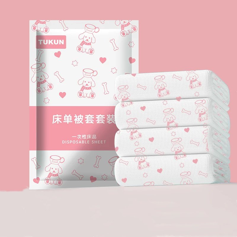 【可签到+淘金币抵扣到手更优】TUKUN一次性床单四件套,酒店/火车/民宿都能用,灭菌安心睡,无毒无味,柔软亲肤,加厚加大,灭菌处理,轻薄透气,优质无纺布,耐撕扯,不易破,隔脏更安心 ,真空包装便携不占地,速抢