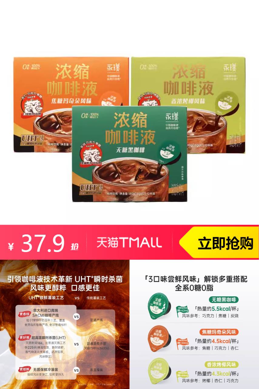 【秒杀直降32元,原味黑咖sku到手37.9元,其他口味sku直降20元,可叠加满200-20元消费券,20颗加赠折叠蓝、30颗加赠小房子玻璃杯+欧诗漫精华液1.2ml*5、50颗加赠冰霸杯】永璞浓缩咖啡液0糖0脂20杯,20杯美味轻松拥有,提神醒脑超赞!