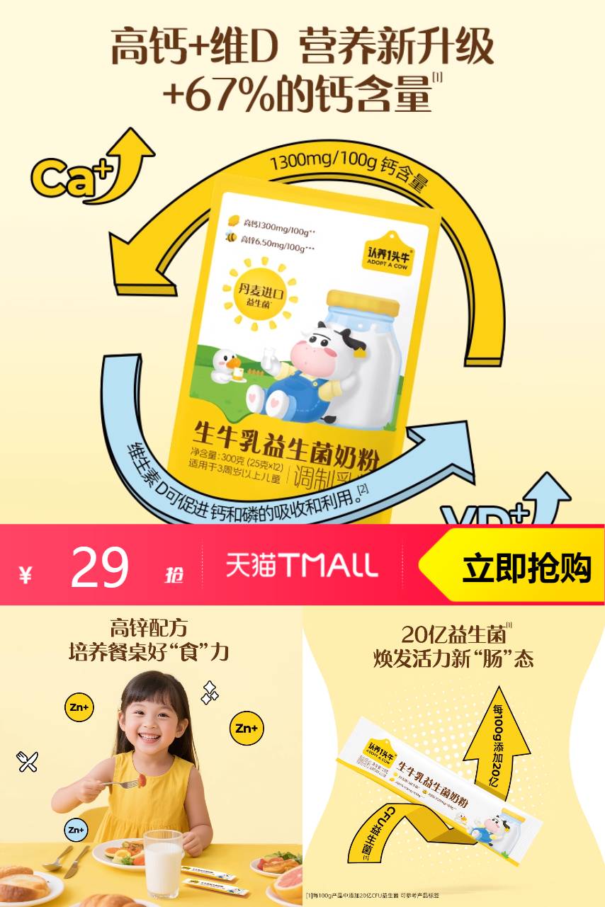 【立减12+叠加消费券到手更优惠】丹麦进口菌,添加动物双歧杆菌,乳亚种Bb-12,高锌配方,干净配料,安心配方,轻松补充全家营养