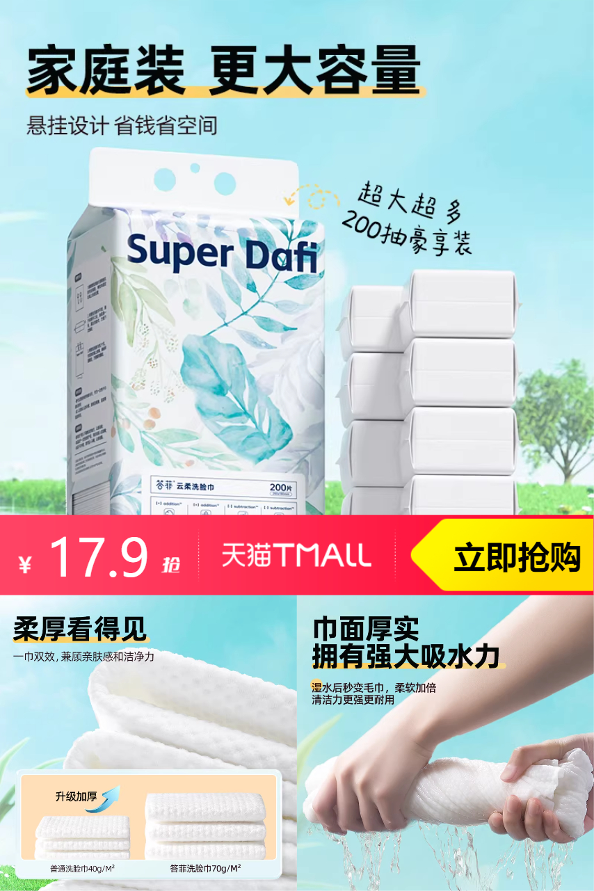 【首单礼金4元,淘金币抵扣2.14元,弹店铺红包1元,到手10.76元。】答菲一次性洗脸巾壁挂式1包*150抽,厚韧有度,柔软如初。