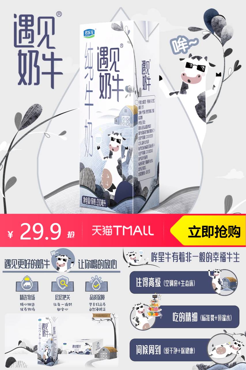【下拉跳转秒杀,69-立减40-88vip95折1.5=28.4元】君乐宝遇见奶牛纯牛奶200ml*24盒,遇见更好的奶牛,让你喝得放心
