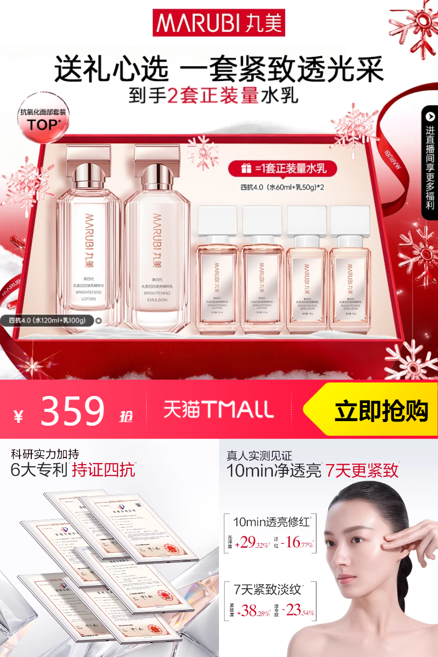 【买一套送一套正装量+礼袋,消费券立减20和淘金币14.07到手319.93】【圣诞礼物】丸美四抗4.0水乳护肤套装,一款集抗氧化、抗糖化、抗光老、抗热老四大功效于一体!肌肤变得更加细腻紧致,干燥粗糙的现象也得到了显著改善!