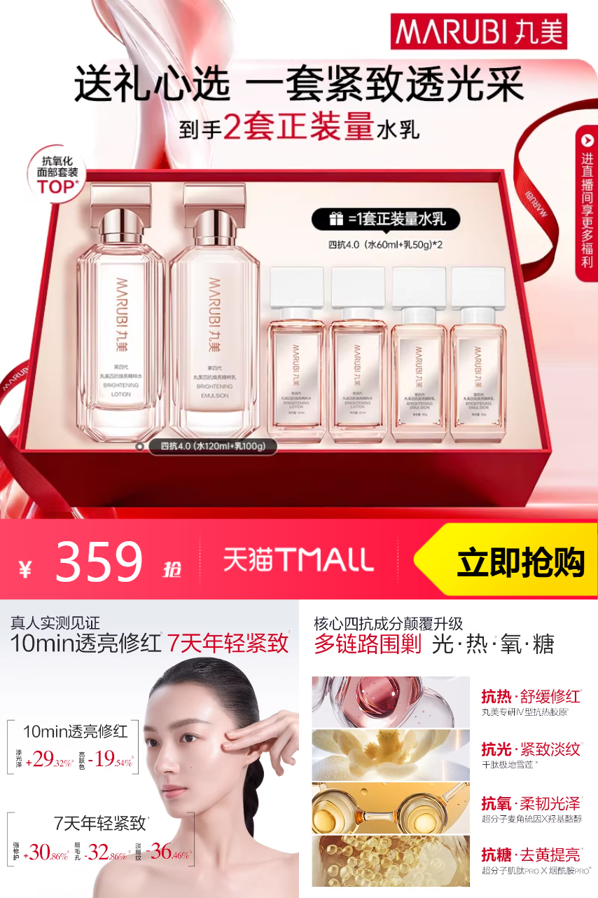 【赠送120水+100g乳+礼袋,直播间下单到手295.49】【38女神节】丸美四抗4.0水乳礼物,5年专研突破再升级,成分升级、功效增强、见效更快,即刻净透亮,7天年轻紧致!