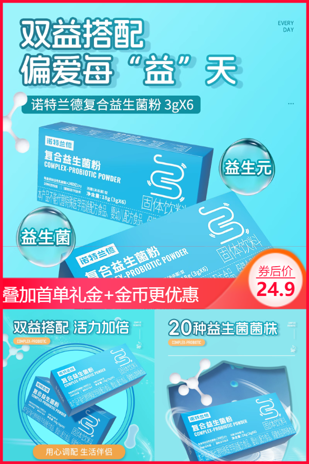 【首单+金币+88VIP,下拉详情抢双11限制福利,到手更优惠】诺特兰德,双益搭配,偏爱每益天,复合益生菌粉,20种益生菌菌株,400亿CFU活菌/条 ,方便携带,用心调配,生活伴侣。