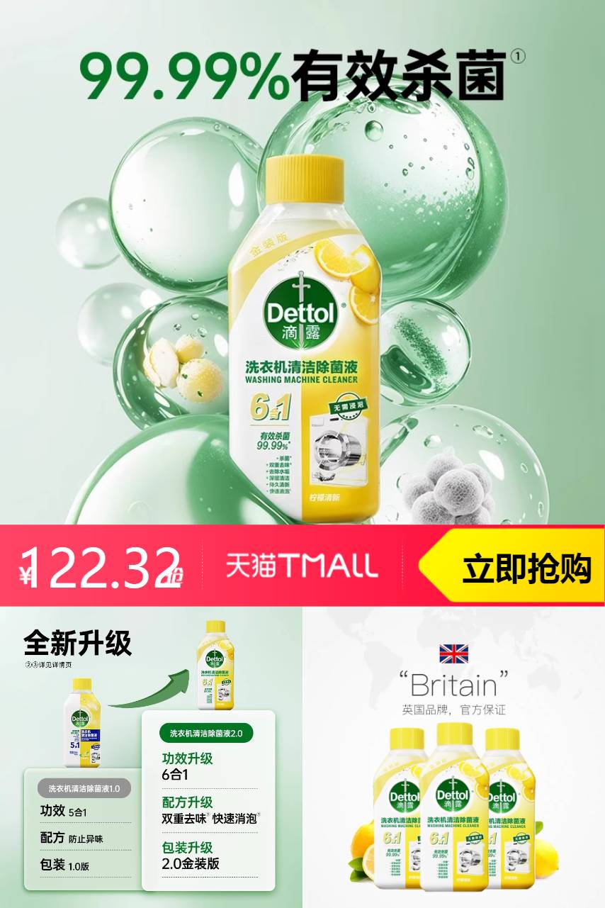 【立减21.59+88vip95折+9折消费券到手96.2元,单瓶到手16元】 每天洗衣、衣物清新如新,背后是我们强大又可靠的D11滴露洗衣机清洗剂。