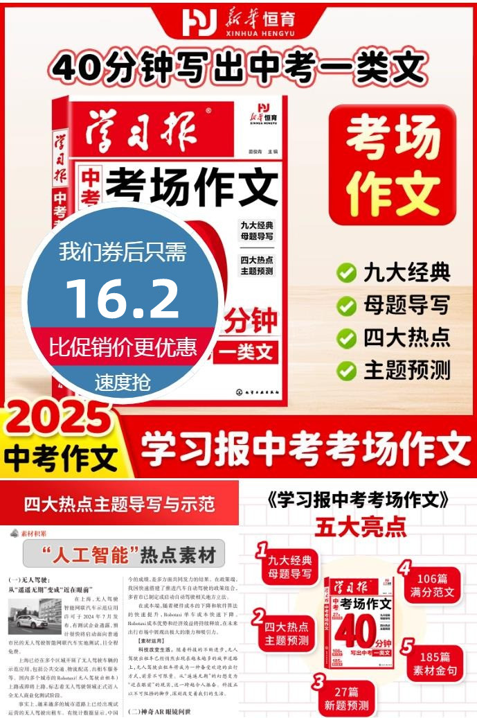 【新华书店正版】2025中考满分作文学习报中考考场作文,九大经典,母题导写,四大热点,主题预测,中考新题预测与佳作借鉴,40分钟写出中考一类文!初中必备高分金句摘抄中考押题!