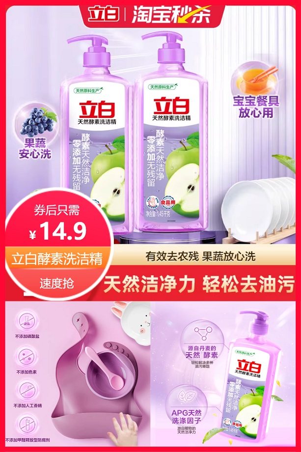 【下拉详情页秒杀直降20.1+88vip省0.75元+秒杀红包0.5元+淘金币省0.35元后约13.3元到手2.9斤】食品级果蔬婴儿餐具,A类洗洁精,APG天然洁净因子,4大0添加,安全无残留!