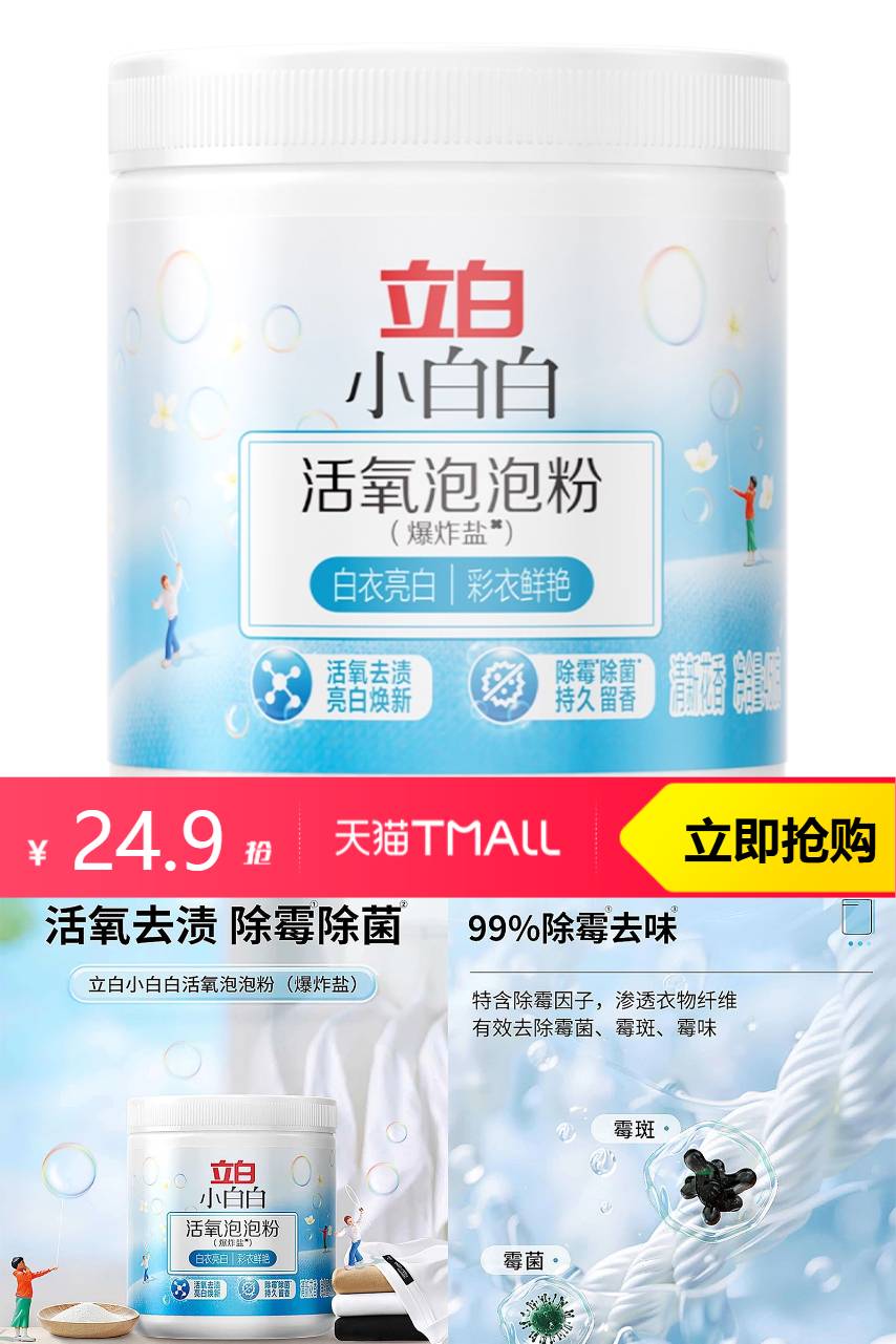 【淘金币抵扣1.59元,店铺限时红包减3元,叠加88VIP到手价19.06元】立白爆炸盐婴幼儿专用彩漂粉300g,活氧去渍 除霉除菌,立白小白白活氧泡泡粉(爆炸盐)~