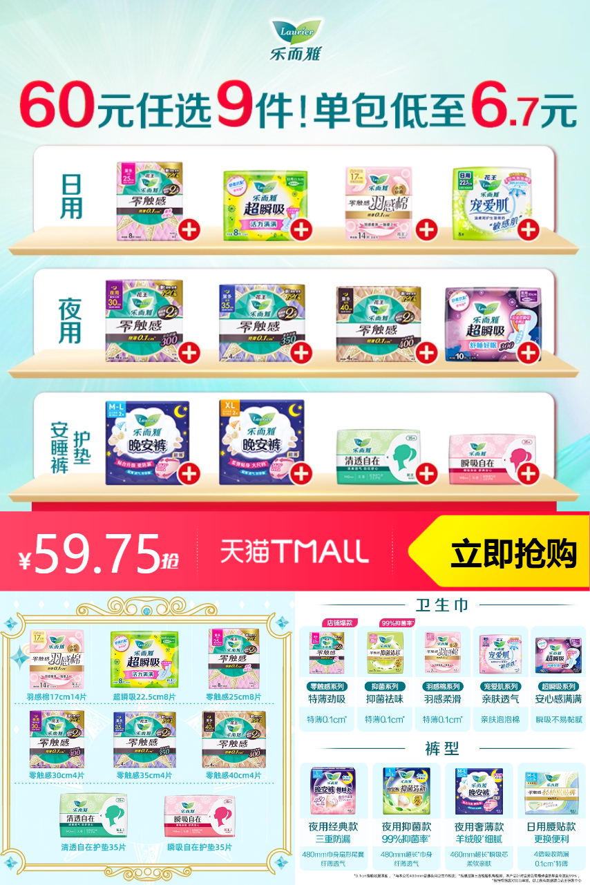 【原价59.75-淘金币3.56=到手价56.19,叠加消费券到手51.84】 柔软贴身,无刺激。采用天然纤维,呵护肌肤,即使是敏感肌肤也能放心使用。