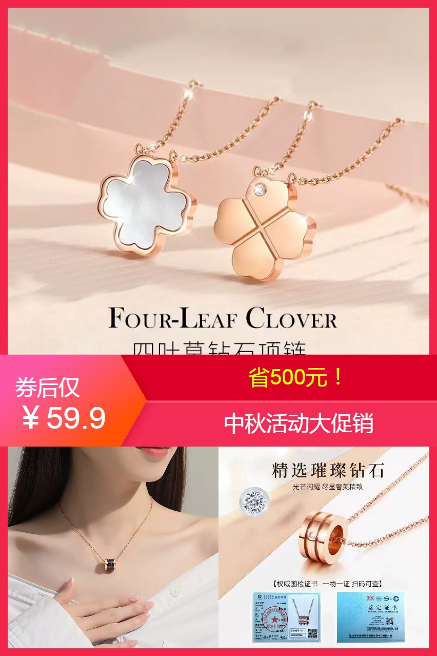 中秋节送老婆礼物!网红爆款时尚项链,纯粹优雅,妩媚动人。小巧精致,优雅玲珑。戴上很显白,送女友!送老婆、送妈妈的礼物准备好啊!!!每款都超级超级超级好看!美到哭(重点是钻石)每款都有钻石鉴定证书,一物一码!