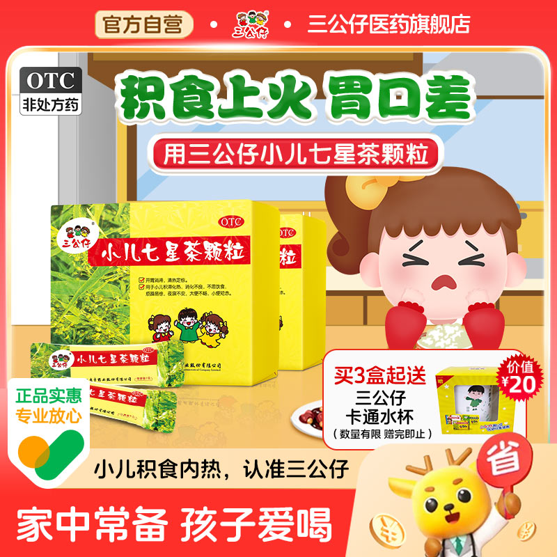 【1件85折】三公仔小儿七星茶颗粒,积食儿童清热消食便秘脾胃调理~