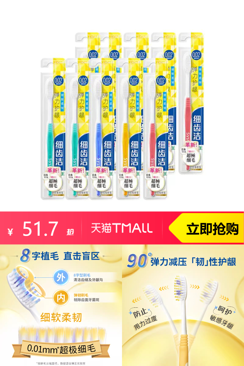 【原价91.5-26优惠券-立减13.8-淘金币7.37-首单4=到手40.33】细软刷毛,升级8字植毛,弹力减压刷颈;科学刷毛布局,全面深入清洁。