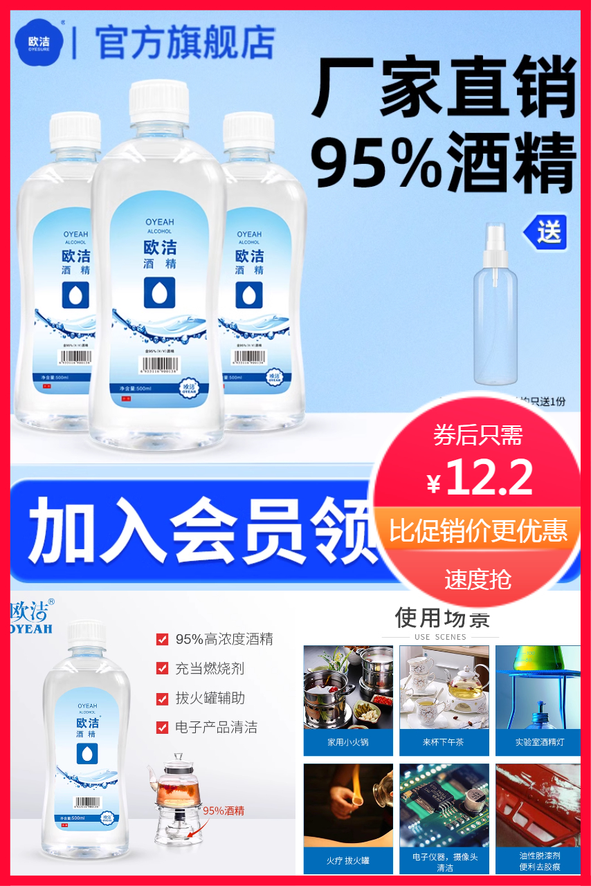 【可签到+立减1.7元+首单直降1元到手约8.9元】百分之95酒精高浓度,高浓无杂质,强力灭菌快准狠!加水133ml稀释到百分之75浓度,杀菌消毒温和护肌不伤肤,多效适用,家居必备神器,专业提示保障,安心使用远离风险